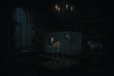 This image is generated by AI solely to enhance the writing experience. It serves as a fictional visualization of the Bestiary of Shadows and does not represent any official or real-world institution.
